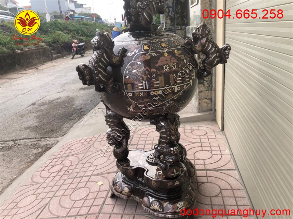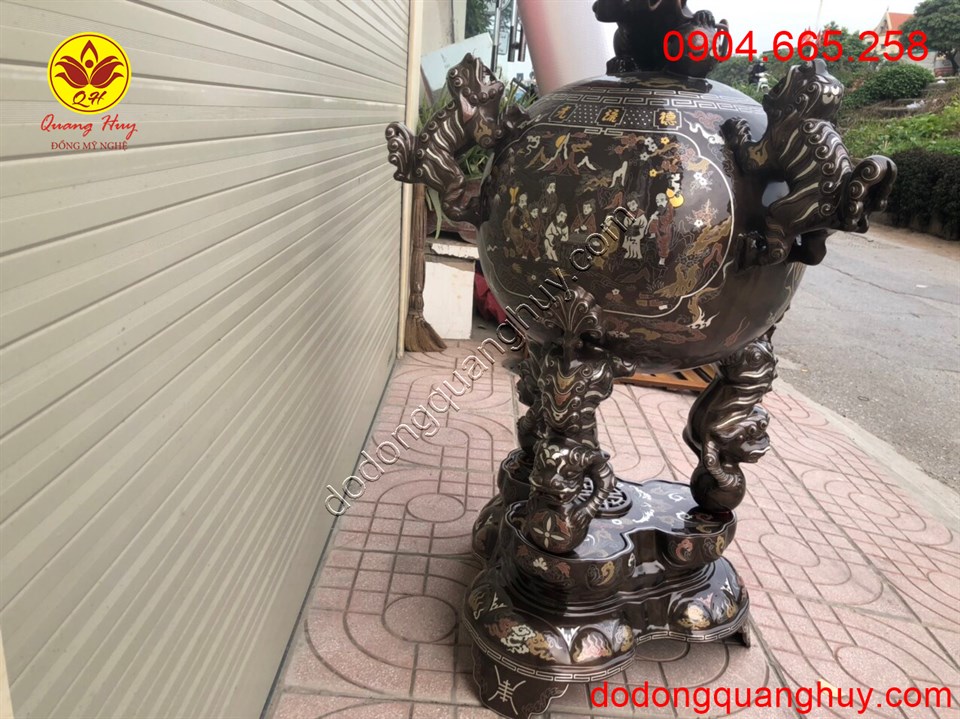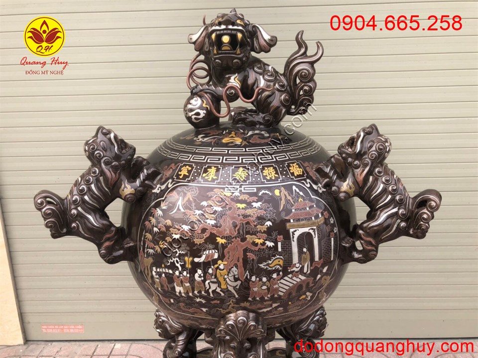 Nguyên Liệu : đồng đỏ nguyên chất đúc thủ công khảm vàng 9999, bạc, đồng đỏ, đồng vàng, đồng xanh hoa văn sắc nét và tinh xảo.