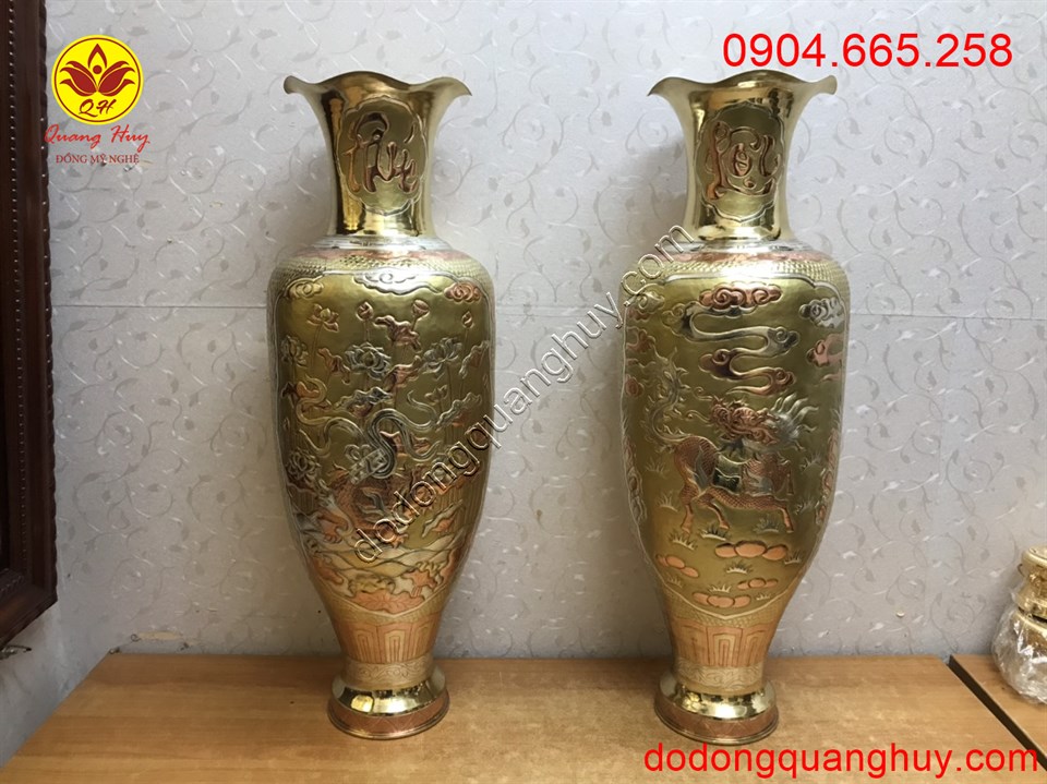 Ngoài mẫu lục bình này, Đồ đồng QUang Huy nhận chế tác với các kiểu dáng hoa văn, kích thước theo yêu cầu quý khách hàng.