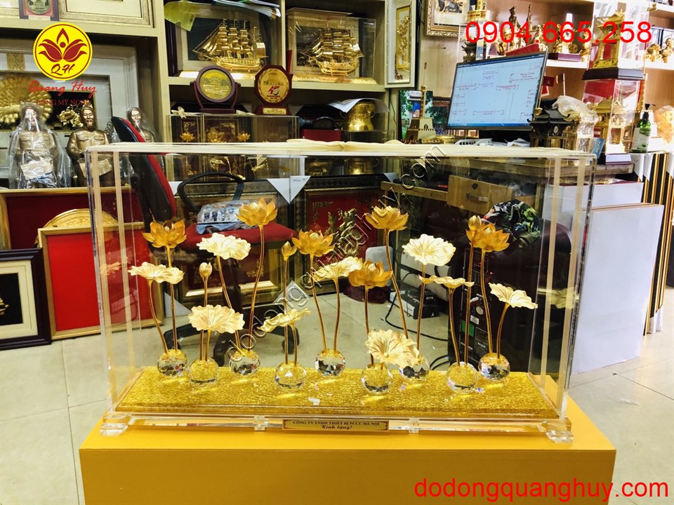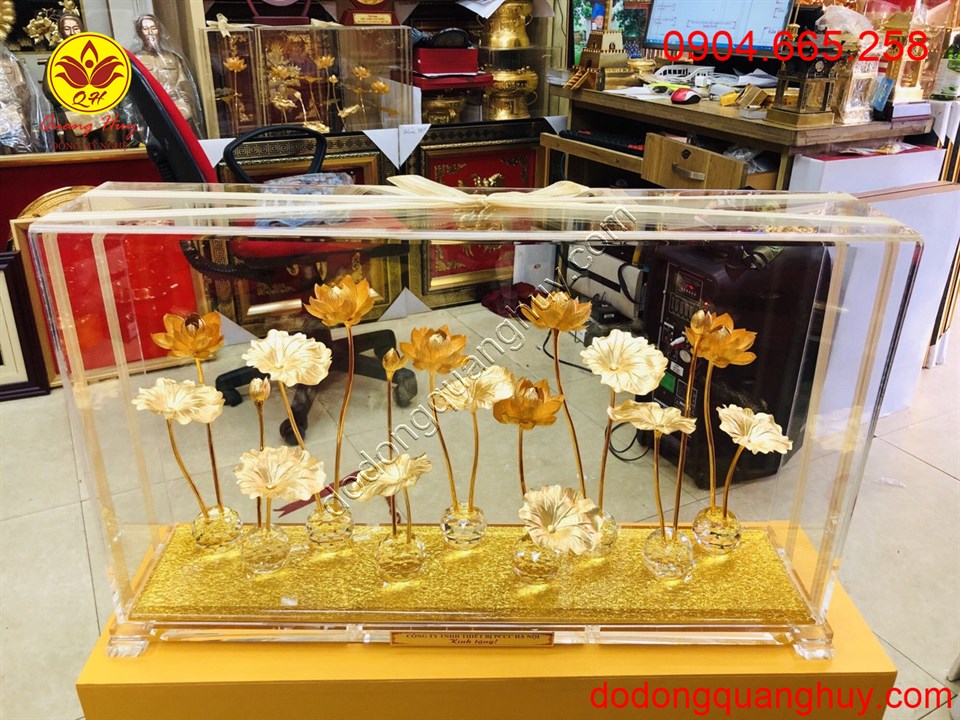 Hoa sen bằng đồng mạ vành 24k quà tặng cao cấp