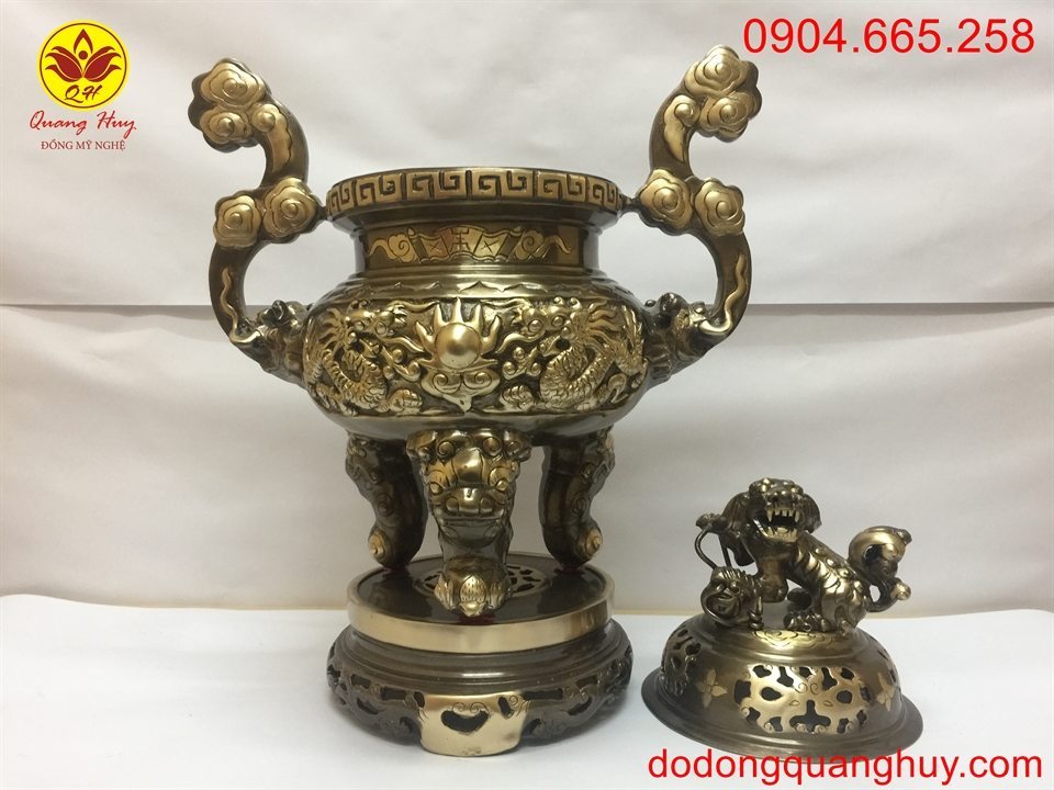 Mục đích sử dụng: Đỉnh đồng vàng cạo màu với hoa văn sắc nét và tinh xảo được dùng rộng rãi trên bàn thờ gia tiên, cơ quan đoàn thể,… phù hợp với bàn thờ có kích thước 1m97 trở lên.