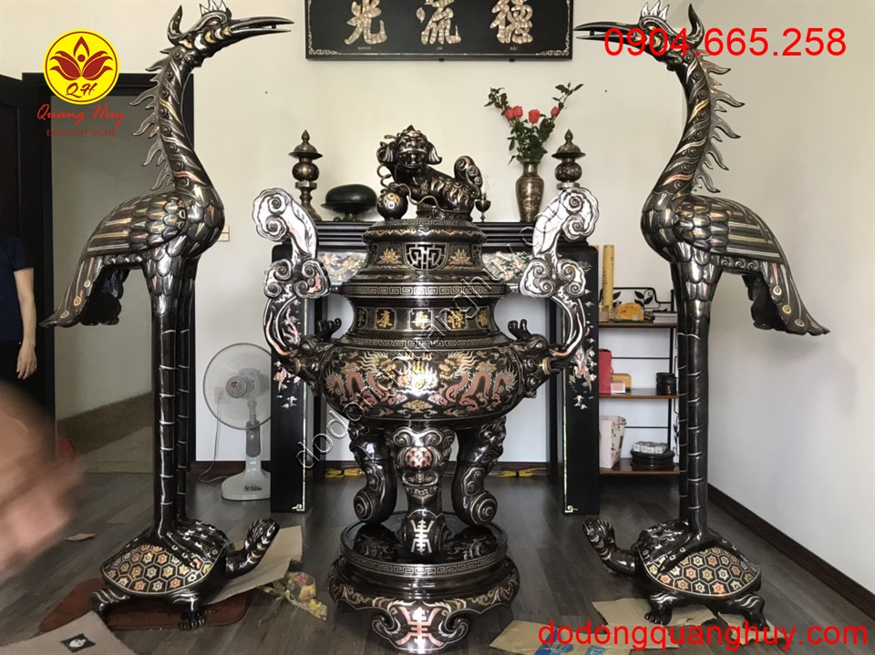 Đỉnh đồng khảm ngũ sắc cao 1m55 được xưởng đúc đồng Quang Huy chế tác là mẫu đỉnh đẹp nhất và cao cấp nhất trong giới đồ đồng . Sản phẩm mang lại điểm nhấn , nổi bật và sang trọng không gian thờ cúng. Hãy đến với chúng tôi !