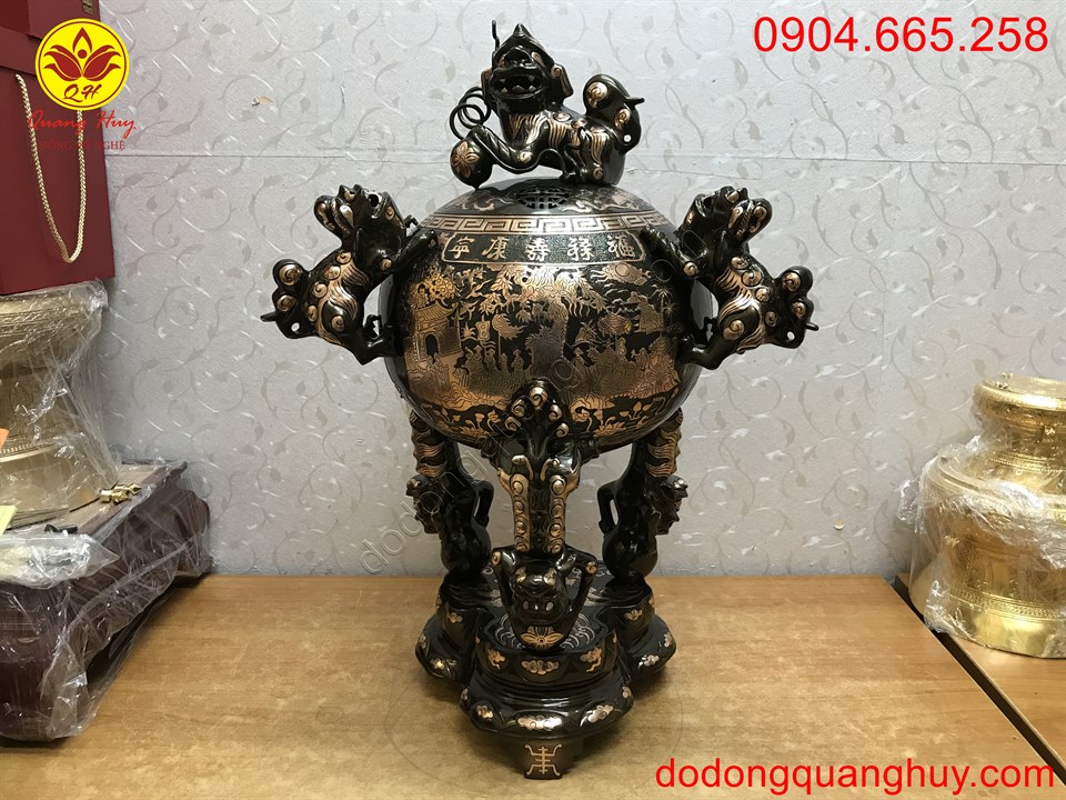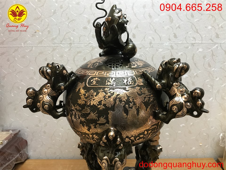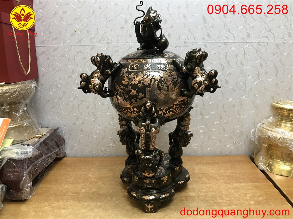 Đỉnh đồng Thất Lân vờn cầu cao 70cm sắc nét và tinh xảo