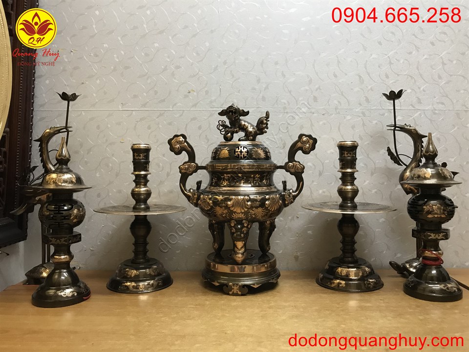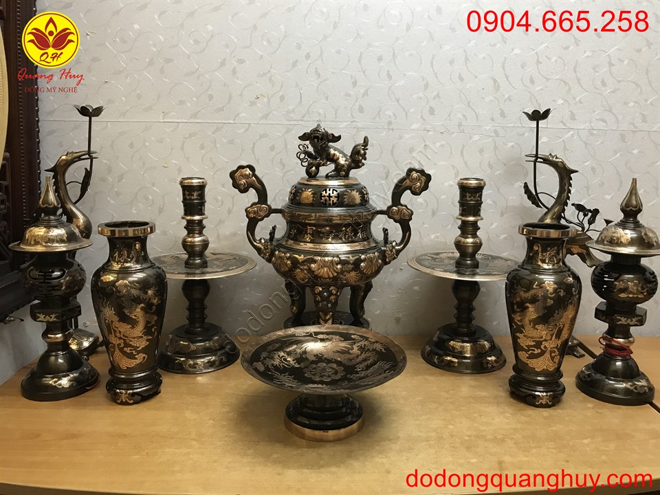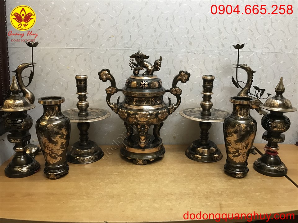 Đồ đồng Quang Huy chuyên nhận đúc bộ đồ thờ bằng đồng theo mẫu mã kích thước quý khách yêu cầu.