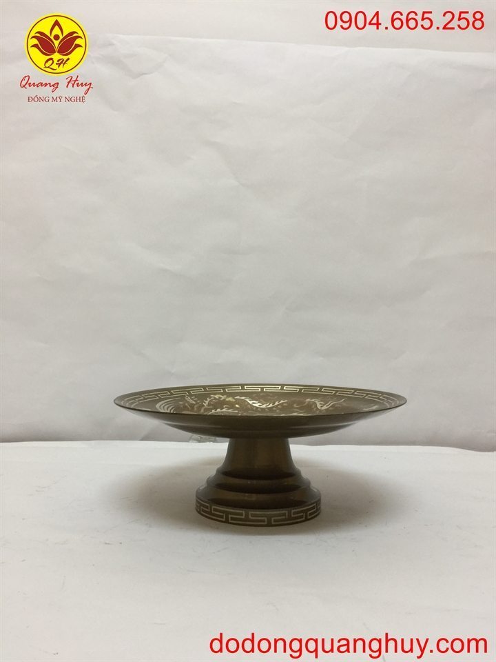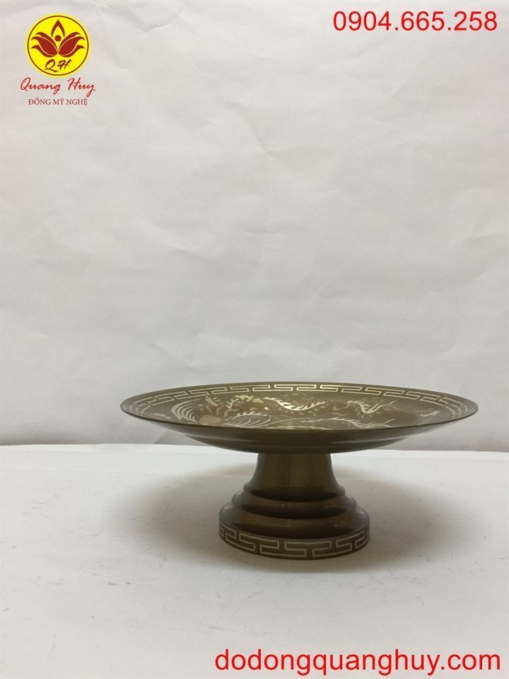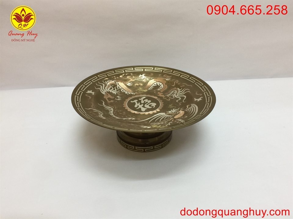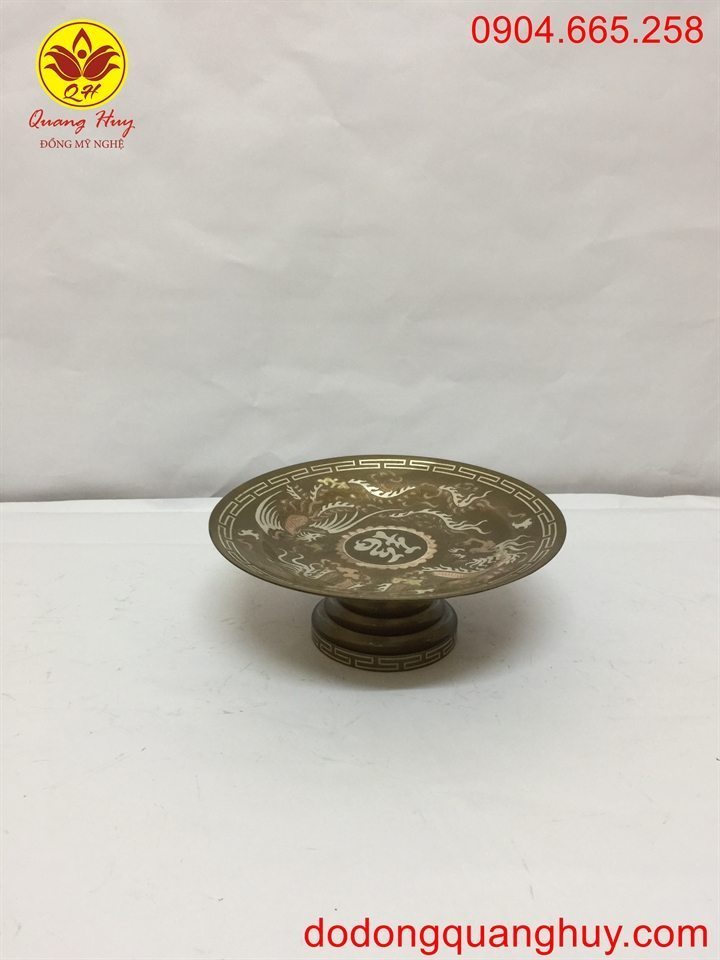 Tên sản phẩm: Mâm bồng bằng đồng đỏ khảm tam khí đường kính 25cm