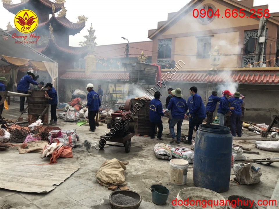 Vào 9h ngày 27/12 năm canh Tý ( 14/11/ 2020 ) Tại ại Chùa Kim Âu – Am Vang Đặng Xá Gia Lâm Hà Nội Xưởng Đúc đồng Quang Huy đã tiến hành rót đồng đúc thành công Đại Hồng Chuông có trọng lượng 1500kg