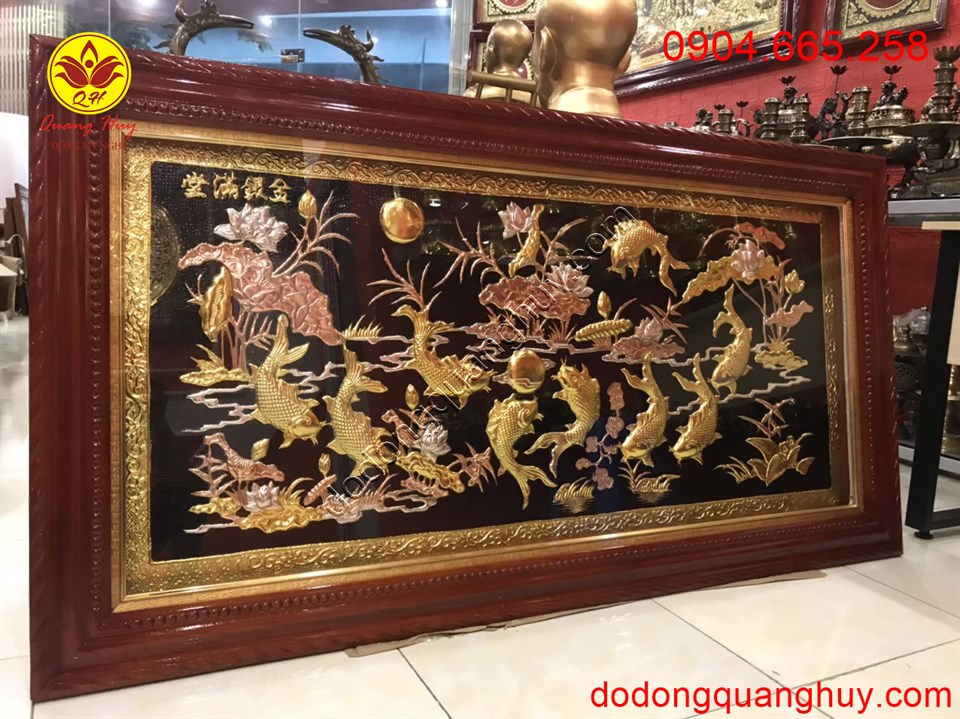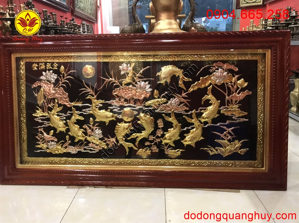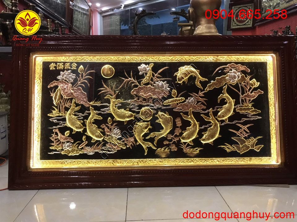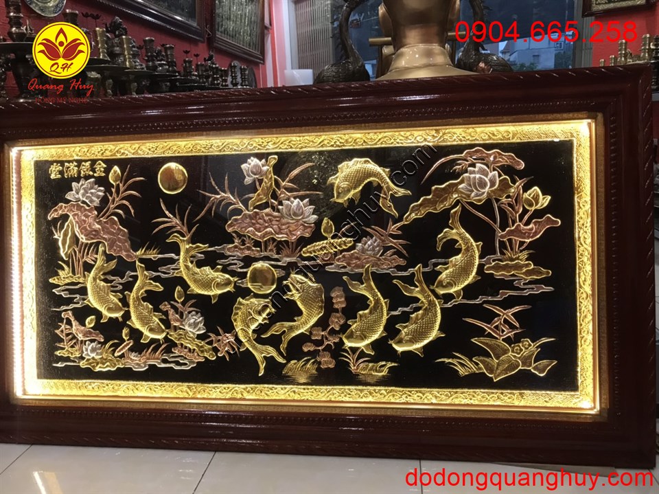 Tranh đồng cửu ngư hoa sen bằng đồng đẹp nhất