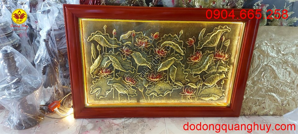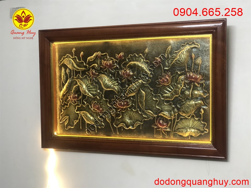 Tranh hoa sen bằng đồng tượng trưng cho vẻ đẹp thanh cao, tinh khiết của tâm hồn, thể hiện sự no đủ, sự cố gắng vượt qua sự đen tối, tranh hoa sen thích hợp treo hầu hết tất cả các không gian.