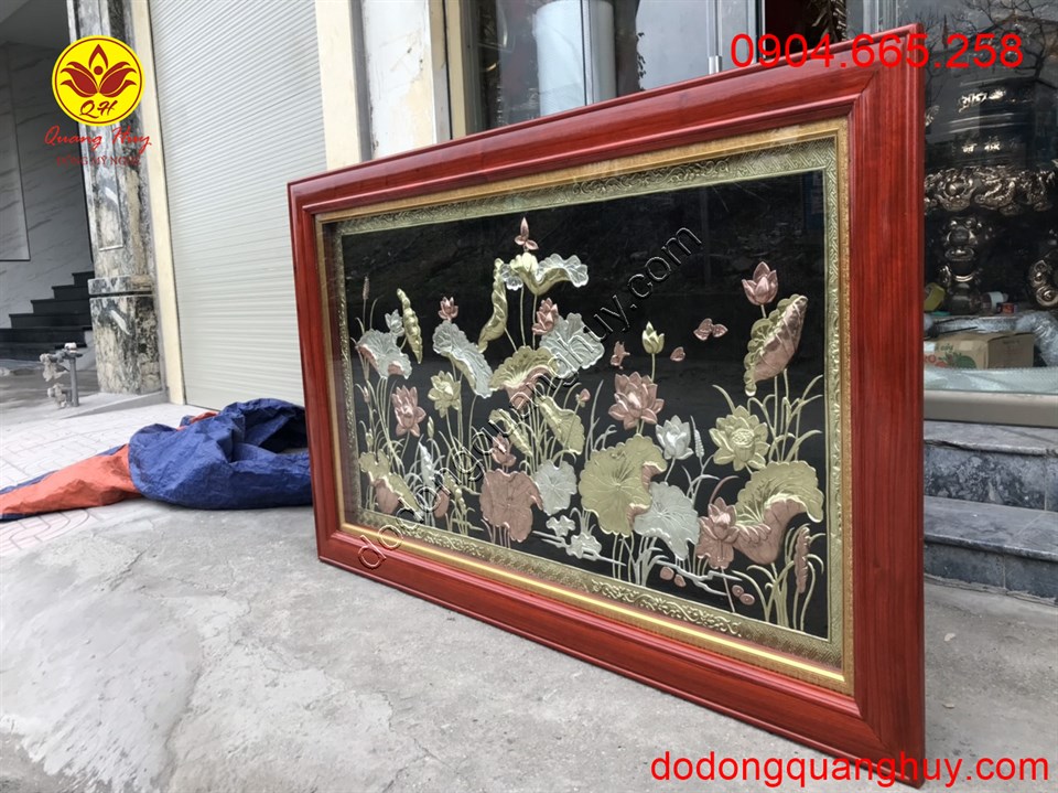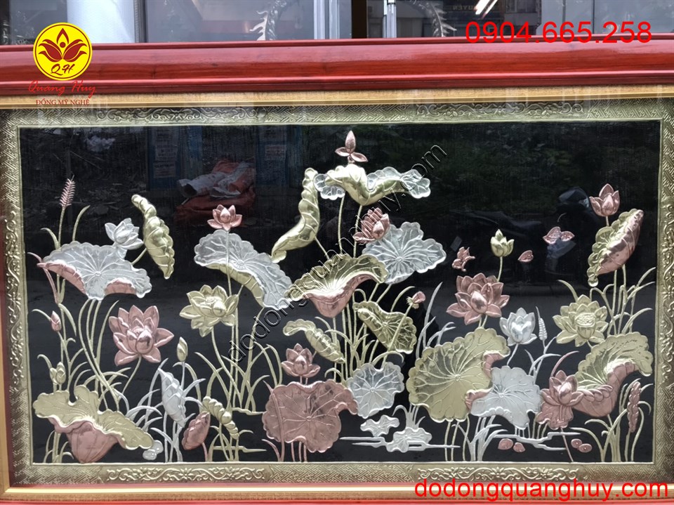 Ngoài mẫu Tranh Hoa Sen này, Đồ đồng QUang Huy nhận chế tác với các kiểu dáng hoa văn, kích thước theo yêu cầu quý khách hàng.