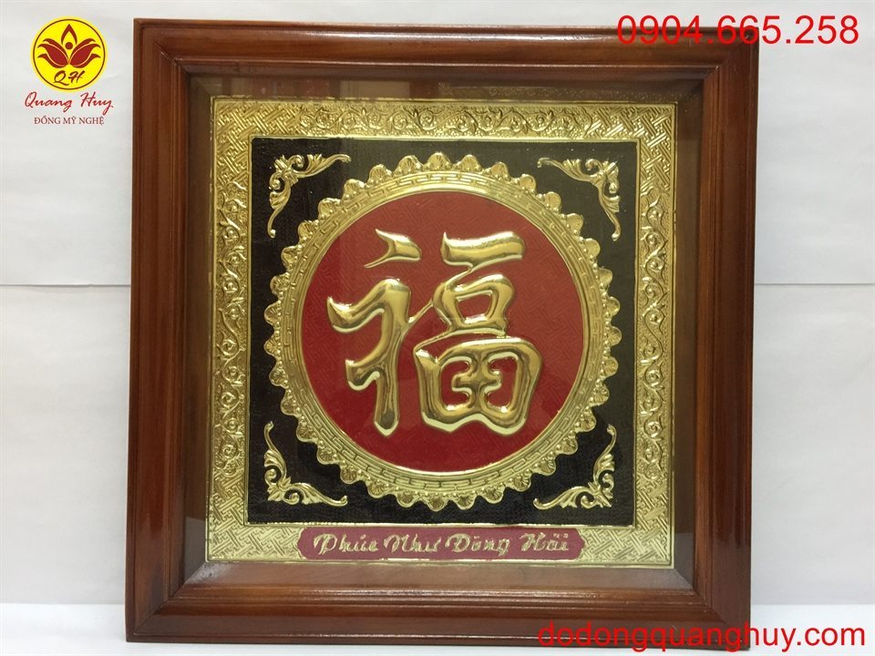 Tên sản phẩm: Tranh đồng : chữ phúc khung gỗ kích thước 60x60cm