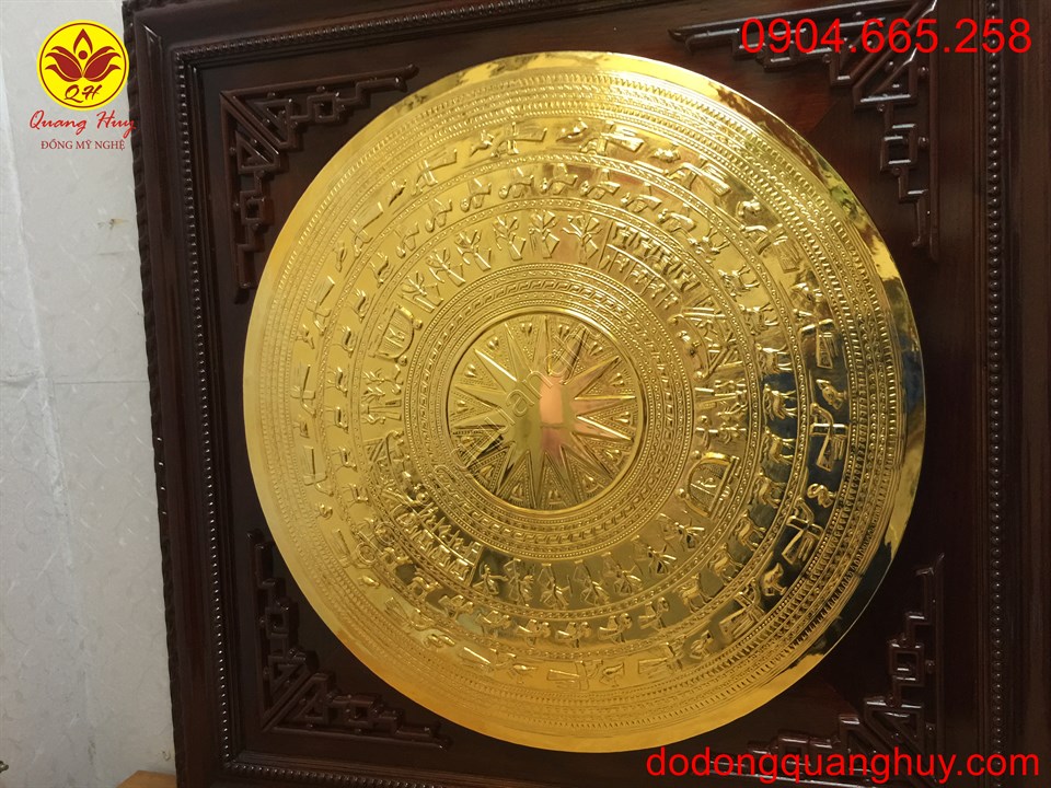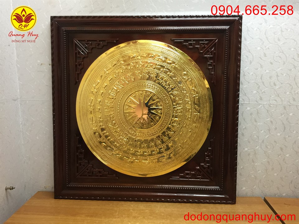 Tranh mặt trống đồng mạ vàng khung gỗ cao cấp