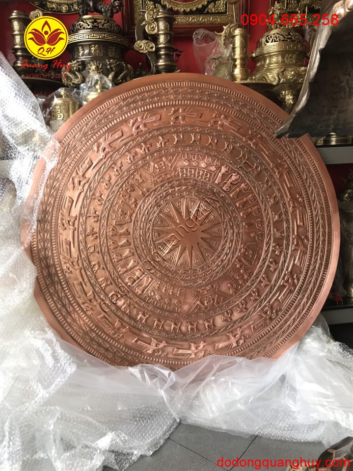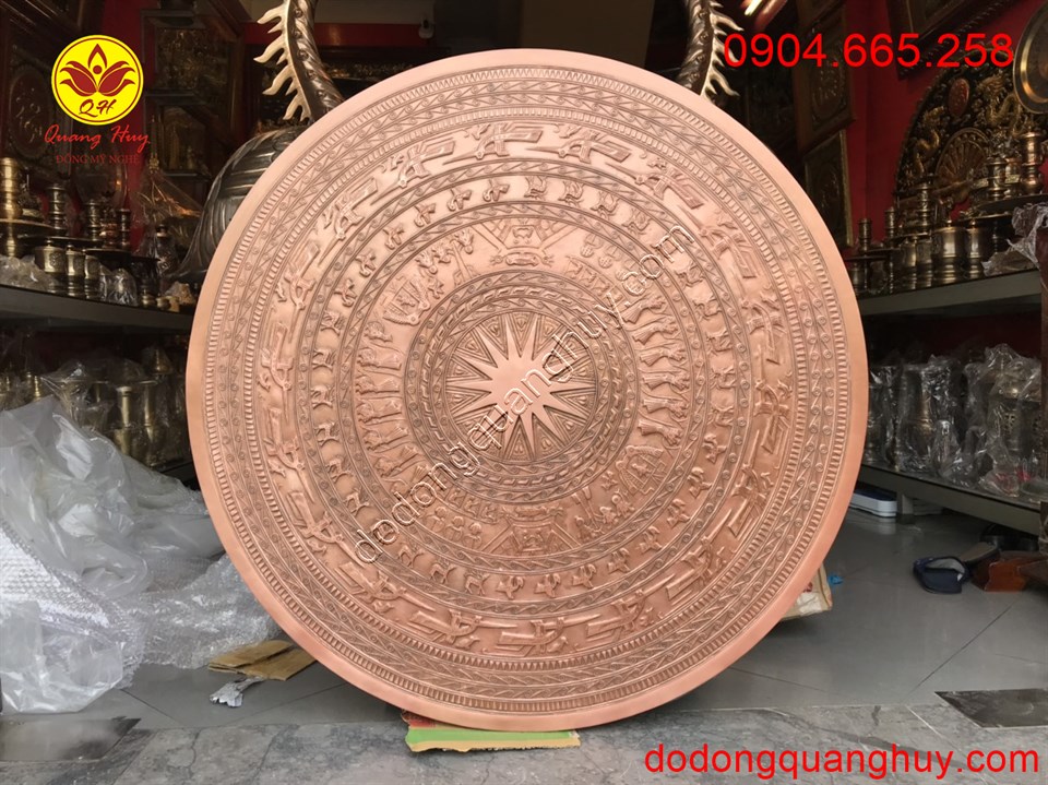 Mặt trống đồng đỏ đúc đường kính 1m sắc nét và tinh xảo