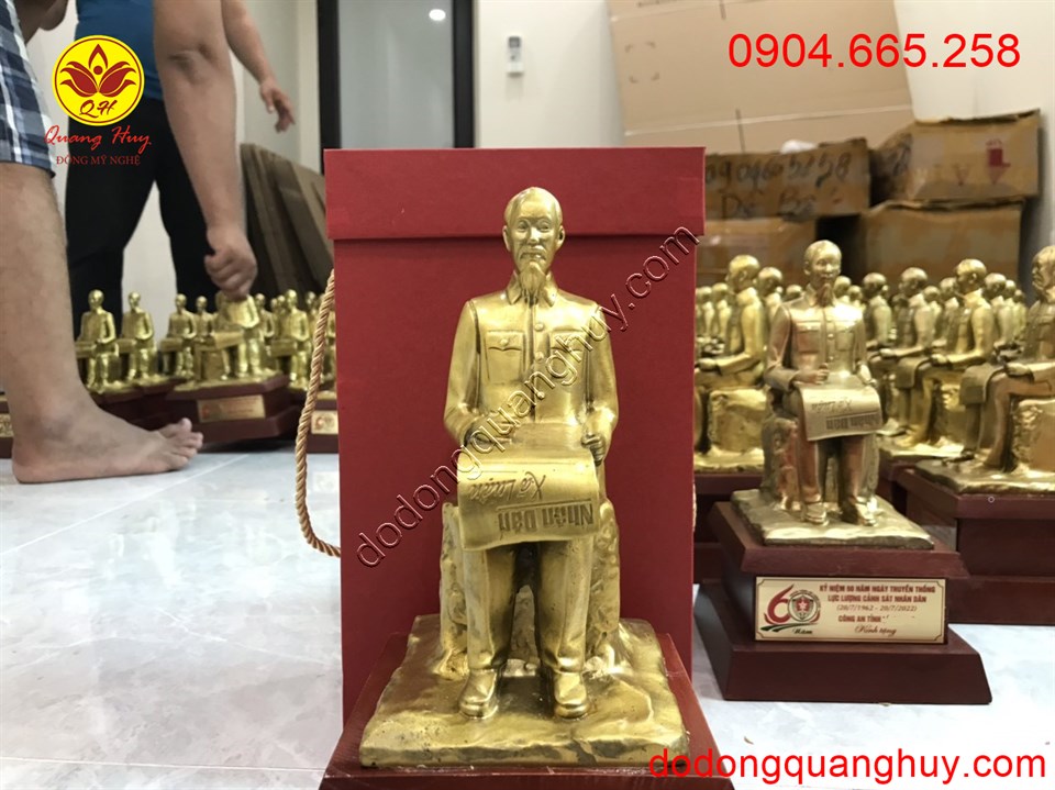 Tượng đồng Bác Hồ ngồi đọc báo nhân dân xã luận được đúc bằng đồng vàng nguyên chất bởi bàn tay của các nghệ nhân xưởng Đúc Đồng Quang Huy – Ý Yên, Nam Định. Hình mẫu khuôn đúc theo mẫu chuẩn của Hội Mỹ thuật Việt Nam cung cấp, dáng ngồi của Bác thanh thoát, khuôn mặt thần thái, tay cầm tờ báo nhân dân.