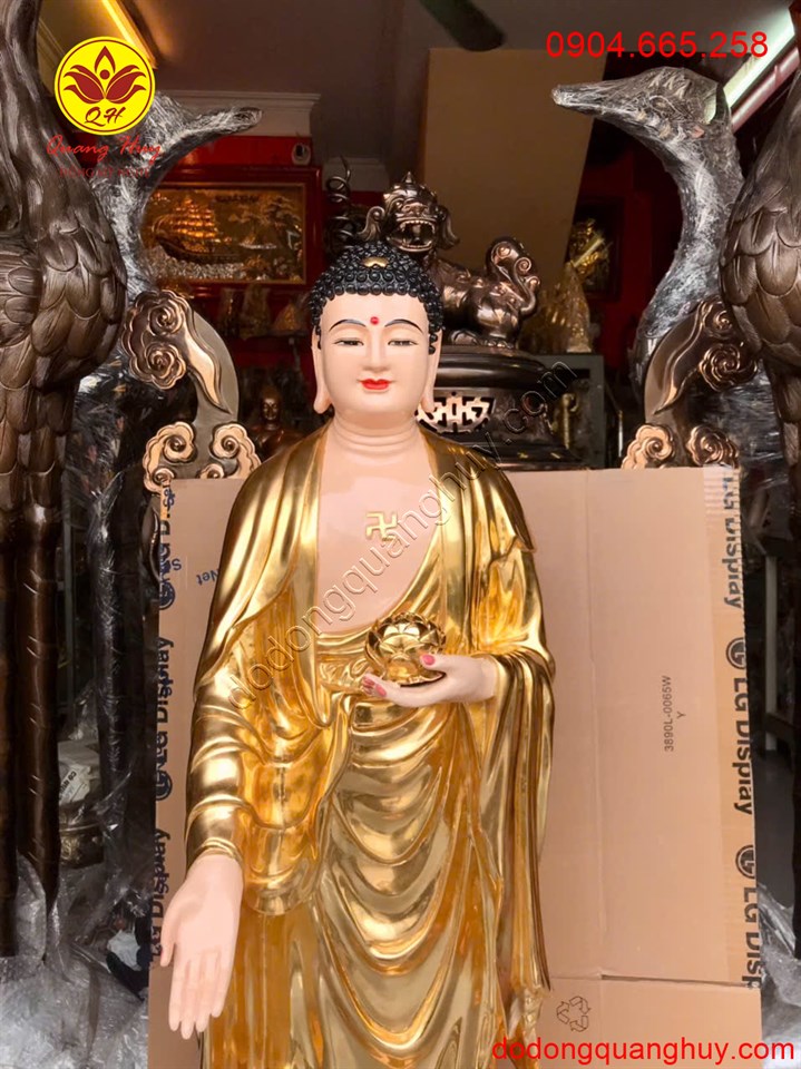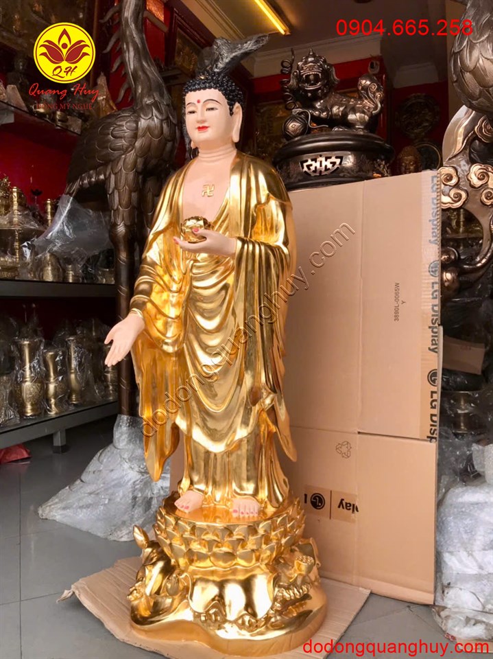 Tượng Phật A Di Đà Đứng Bằng Đồng Dát Vàng 9999 Cao 1m2 – Cao Cấp và Sang Trọng